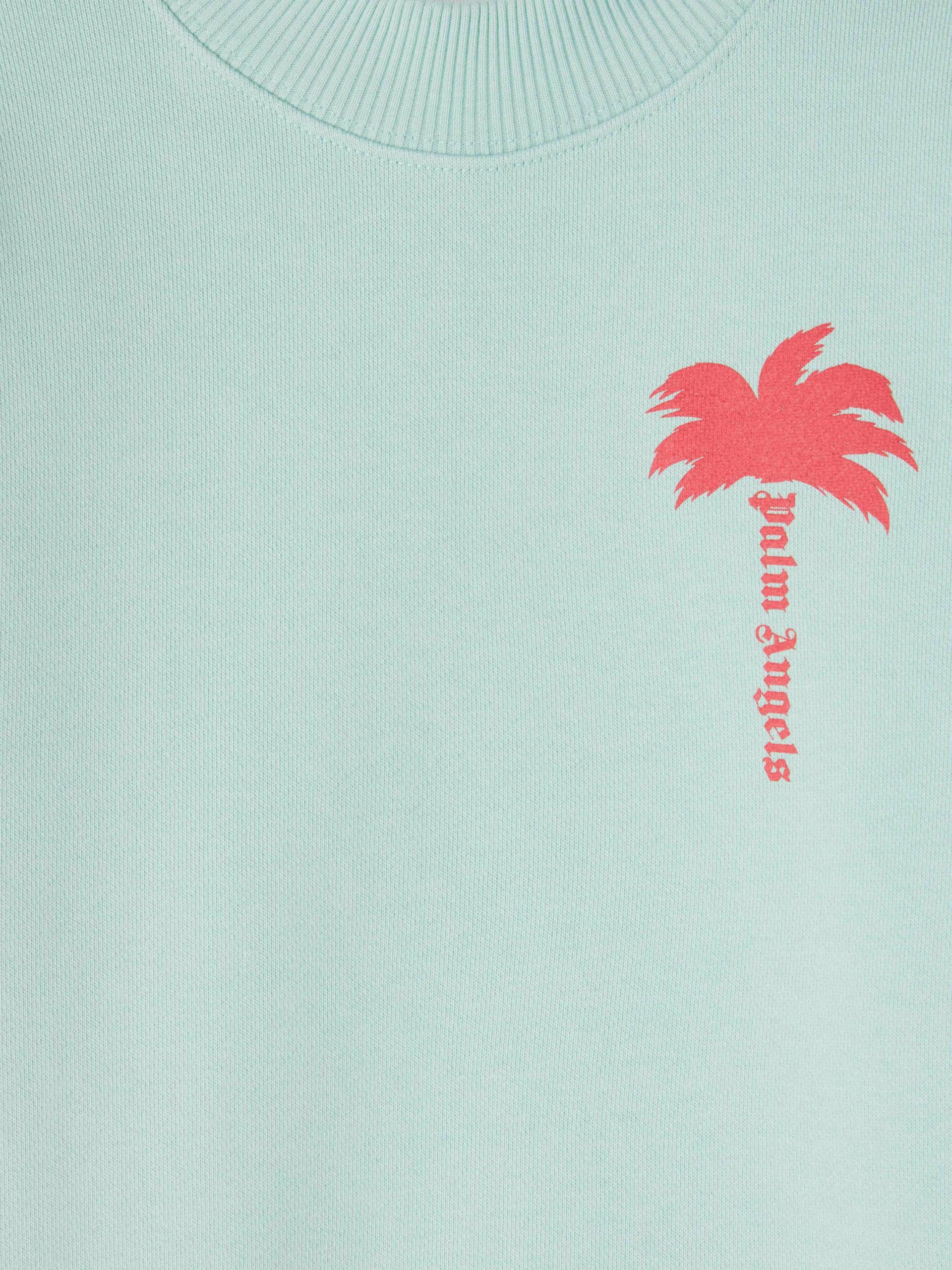 The Palm logo has new bright versions in the mood with summer. Girl’s mint green crewneack sweatshirt with palm leaves and Palm An