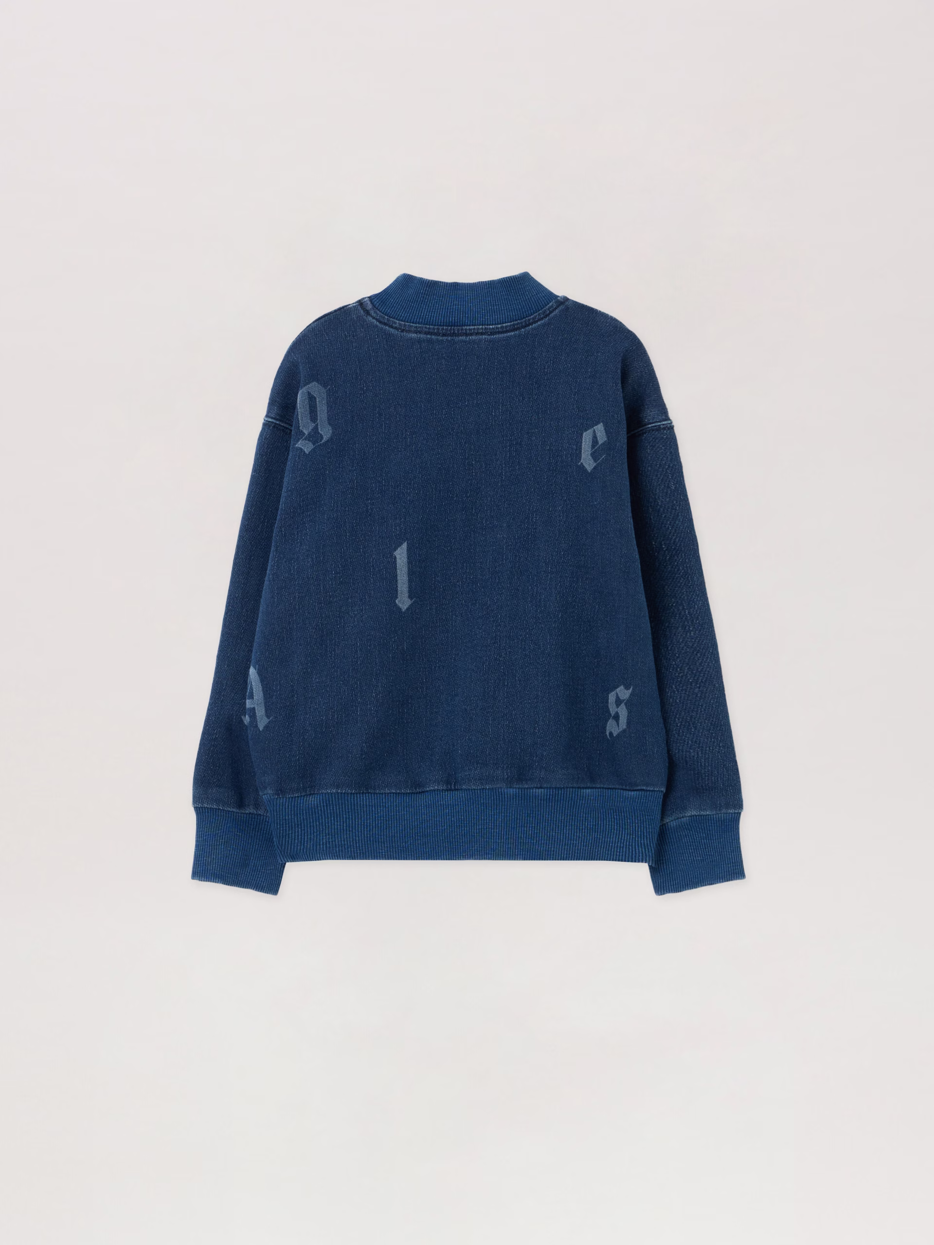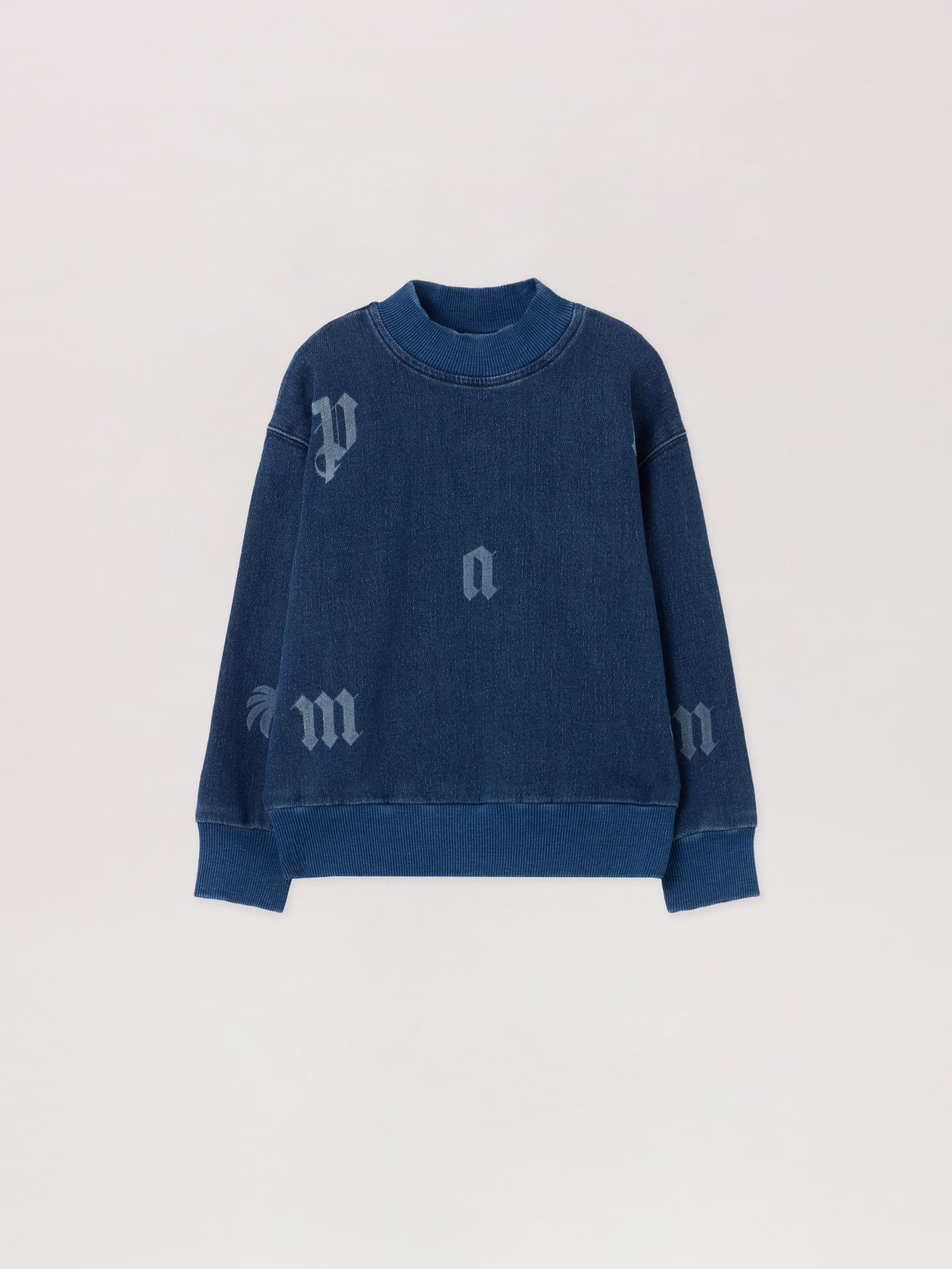 Distinctive sweatshirt in washed fabric featuring iconic lettering design, embodying a fusion of streetwise style and refined c