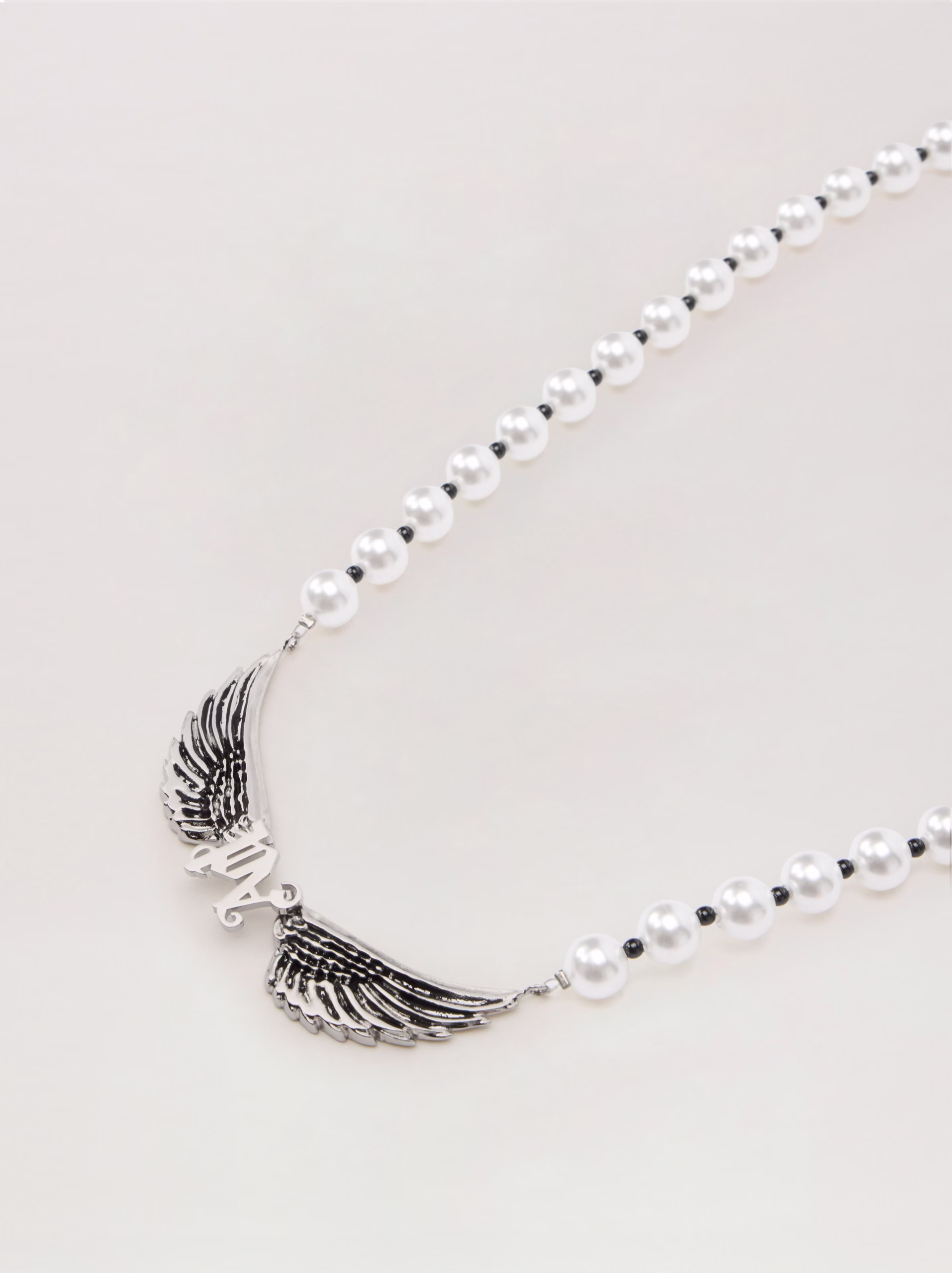 Elevate your style with this exquisite necklace featuring intricate wing details and elegant pearl beads.